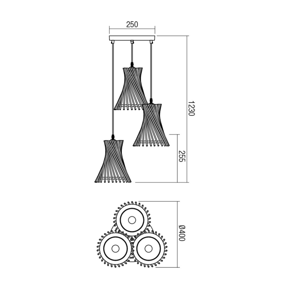 A lámpatest 3 db E27 foglalattal rendelkezik, maximális teljesítménye 3 x 42W. Az izzókat külön kell megvásárolni, a felfüggesztés felszerelhető az A ++, A +, A, B, C, D, E kategóriájú izzókkal.