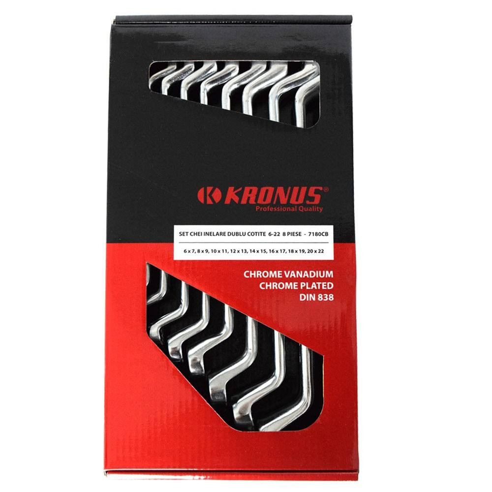 A Kronus 7180CB készlet vanádiumkrómból készült, mérete 6 és 22 mm között van. Felületüket krómozással borították, és korrózióvédelemmel rendelkeznek. Méretek: 6 x 7, 8 x 9, 10 x 11, 12 x 13, 14 x 15, 16 x 17, 18 x 19, 20 x 22).